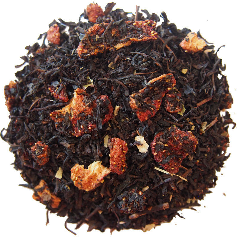 Fekete tea narancshéjjal, mandulaszeletekkel, áfonyával, kardamommal, eperrel és málnával. Főzés módja: Öntsön 100°C-os vizet a levelekre, és áztassa 3-5 percig.